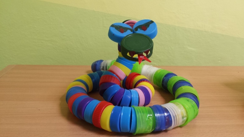Materiały: nakrętki z różnych butelek i