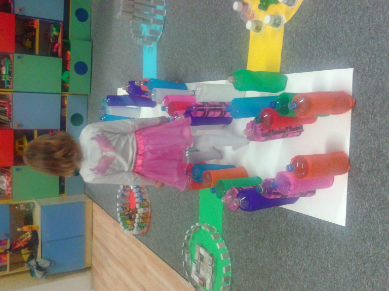 Opis pracy:Dzieci zabarwiły butelki od środka farbą.