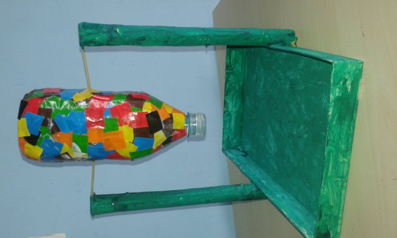 Materiały:plastikowa butelka, wieczko od kartonu,