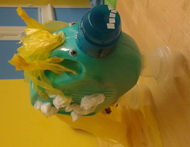 Materiały:Plastikowa butelka, torebki foliowe,
